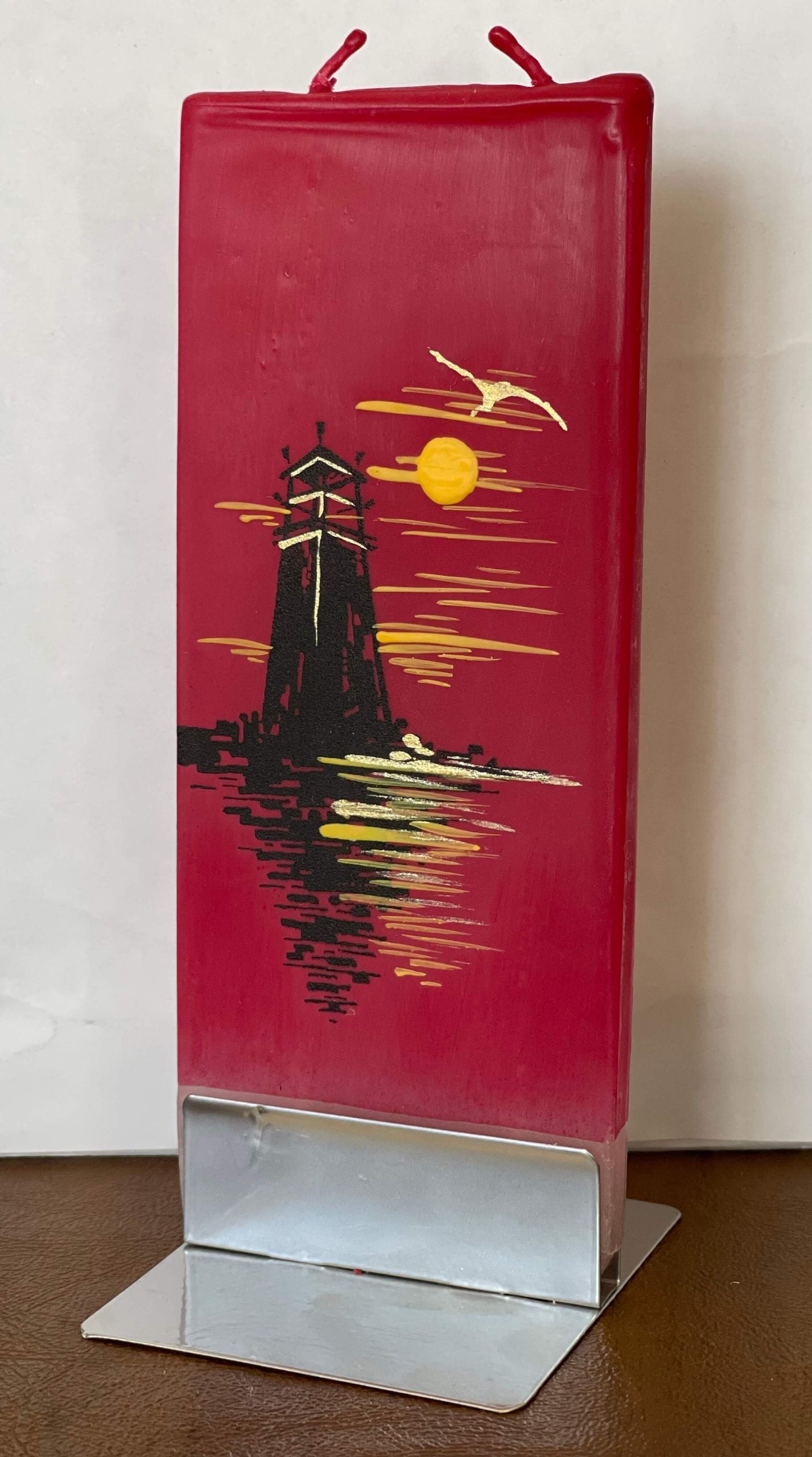 Hand Painted Flat Candle with a Stand, Unscented